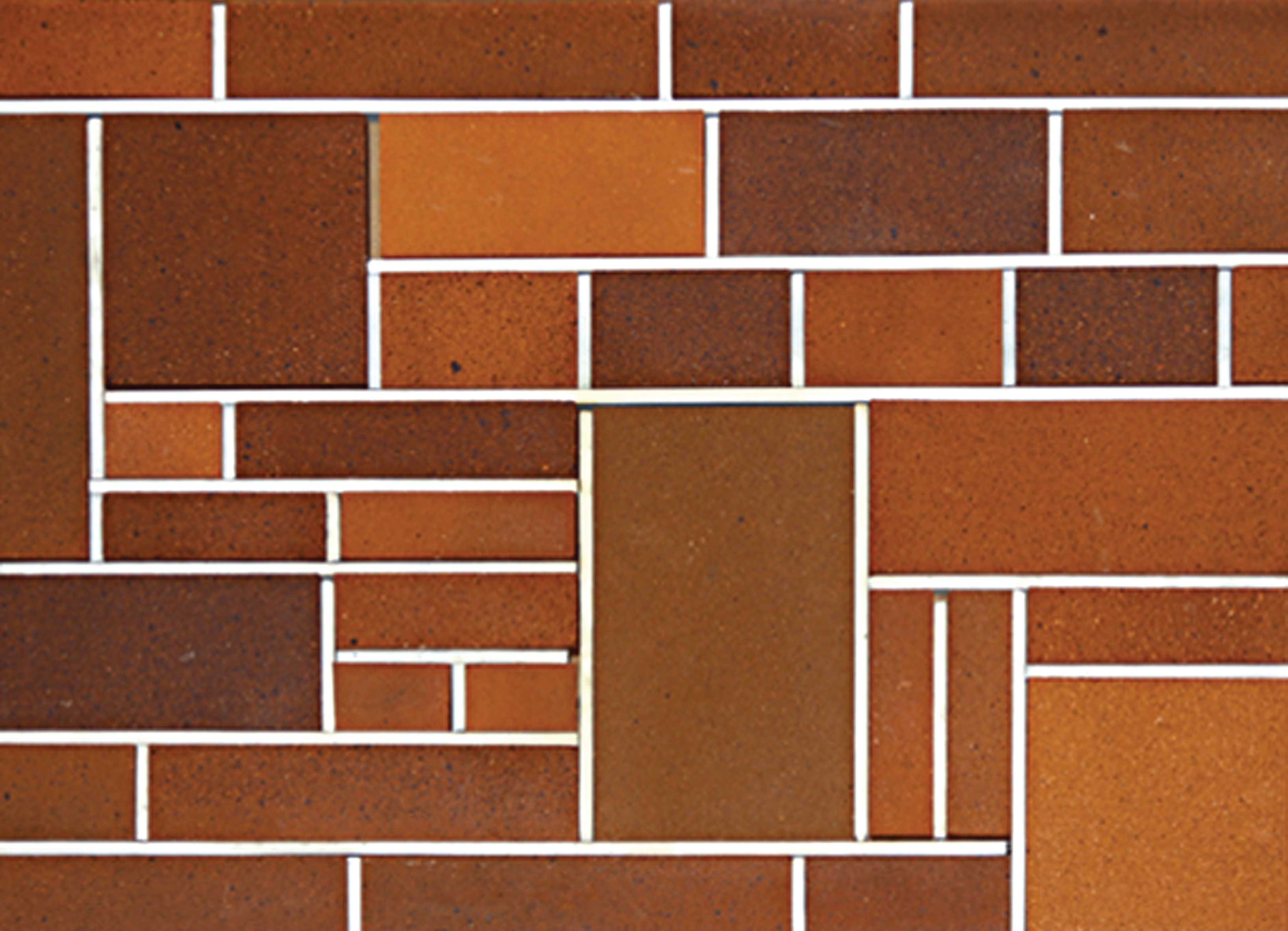 آجر نسوز طرح ترکیب ابعادی قرمز رندوم مخصوص نماهای داخلی و خارجی ساختمان که در 6 سایز است و به صورت پازلی طبق نقشه ارائه شده توسط شرکت اجرا میگردد. - رقم AP000