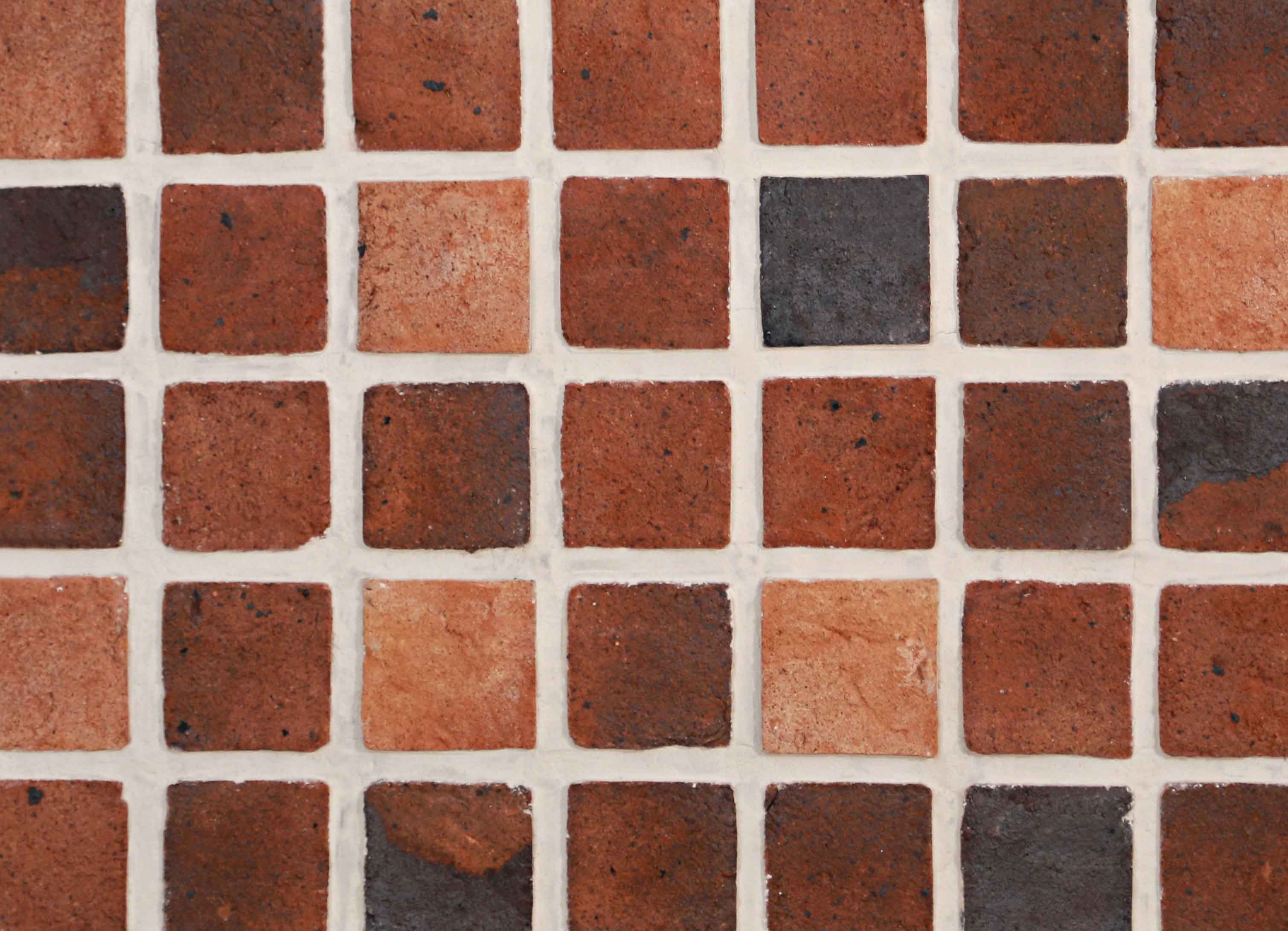 آجر نما مربعی رستیک 10*10 طرح آمریکایی جدید، قرمز رندوم با بازی رنگ سورمه ای مخصوص نماهای داخلی و خارجی ساختمان بوده و در کف و محوطه‌سازی نیز کاربرد دارد. - رقم AR46 - ابعاد. 10x10x2.5